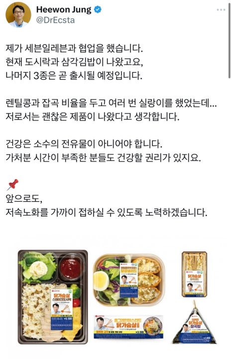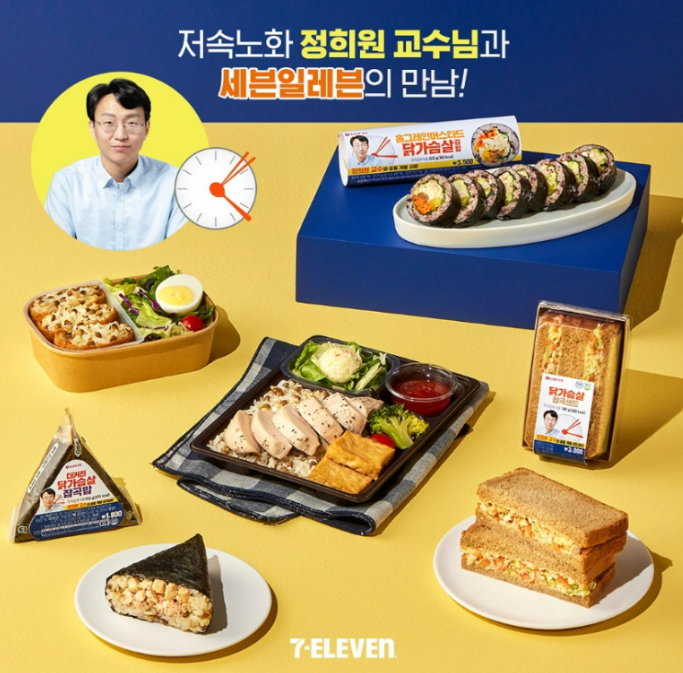 최근 편의점 세븐일레븐이 정희원 교수님의 저속노화 식단을 반영한 제품을 출시했습니다.